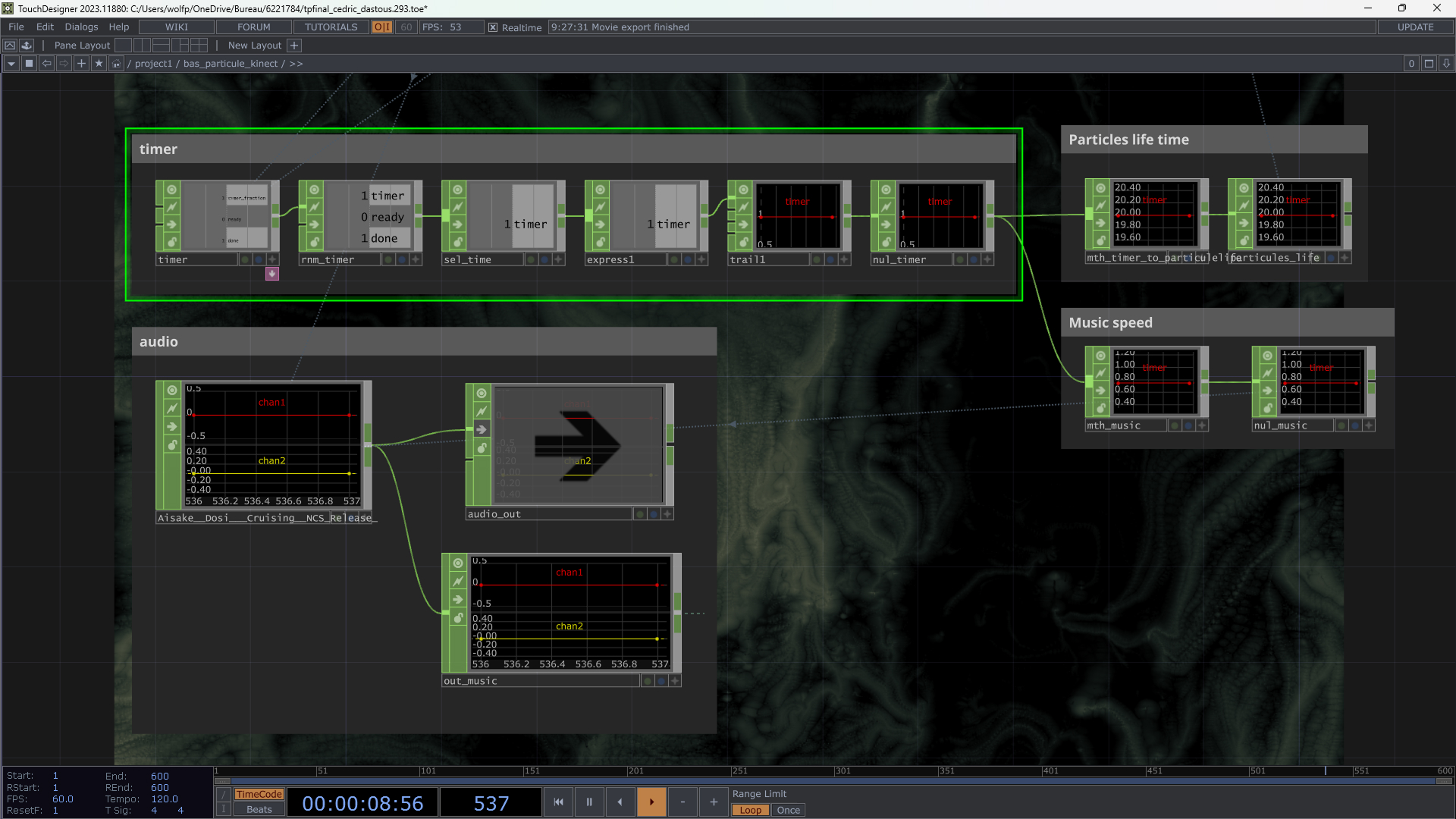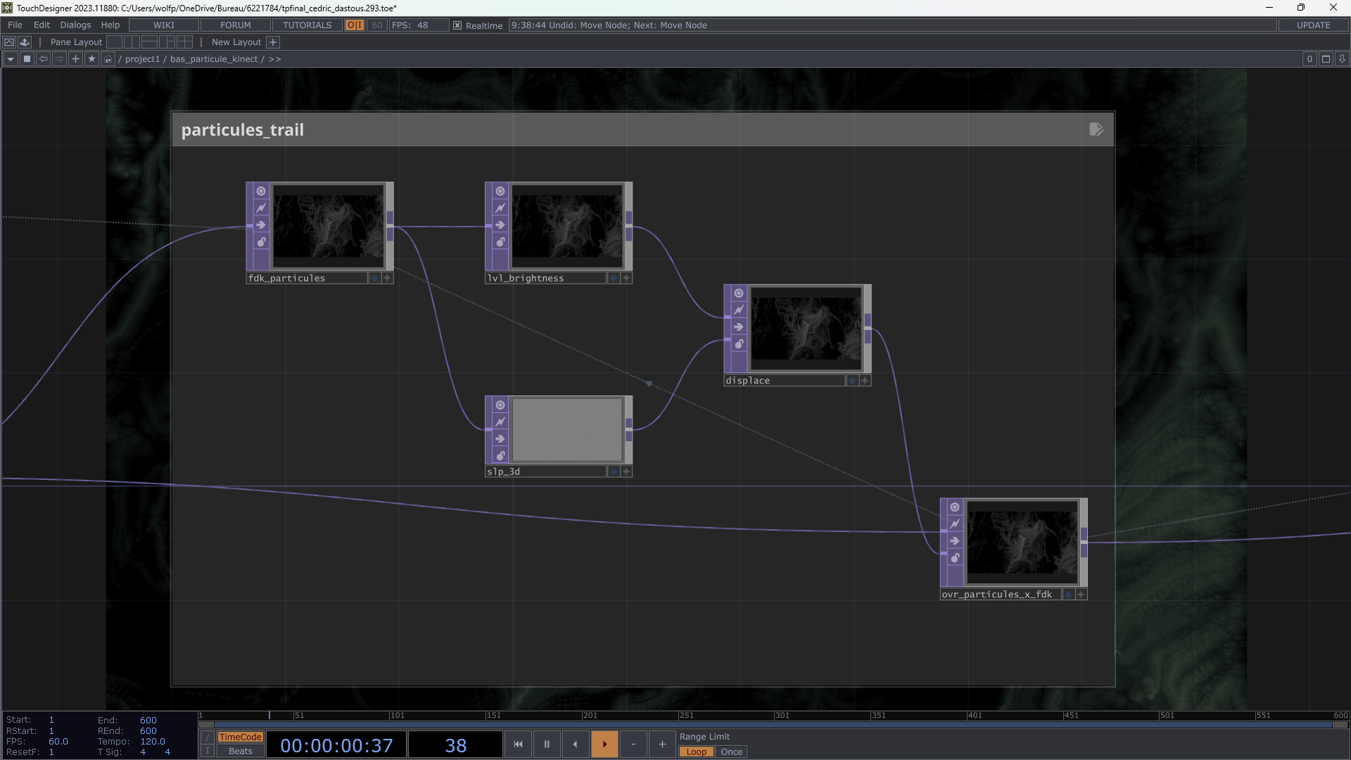 Mon objectif avec ce projet était de créer un système de particules un peu abstrait, qui ne laisse pas les gens indifférents. De plus, je voulais simplement capter l’attention des passants le temps qu’ils comprennent de quoi il s’agit. Pour les plus curieux, le mur évolue en fonction du nombre de personnes détectées.